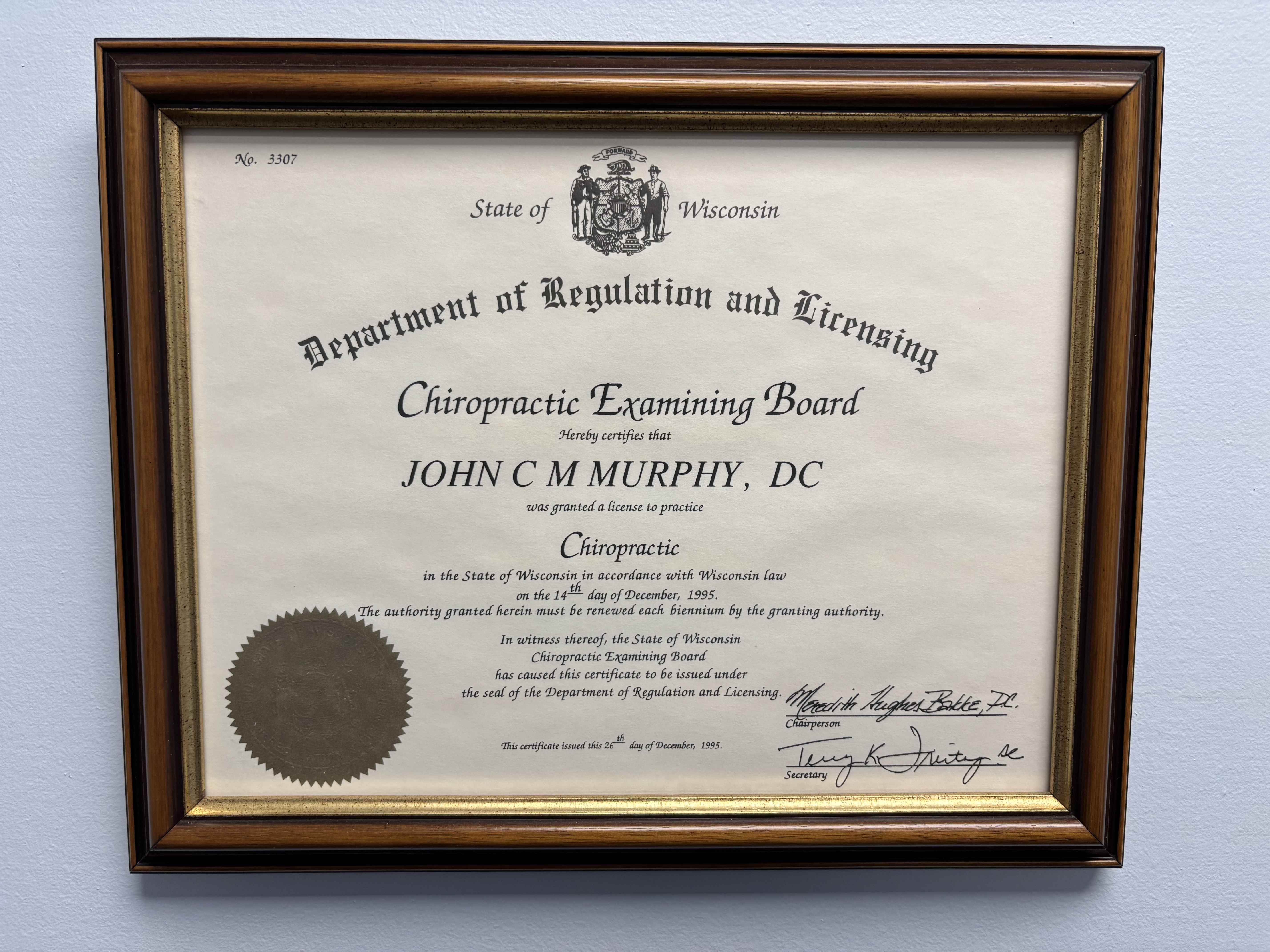 Wisconsin License #3307-012